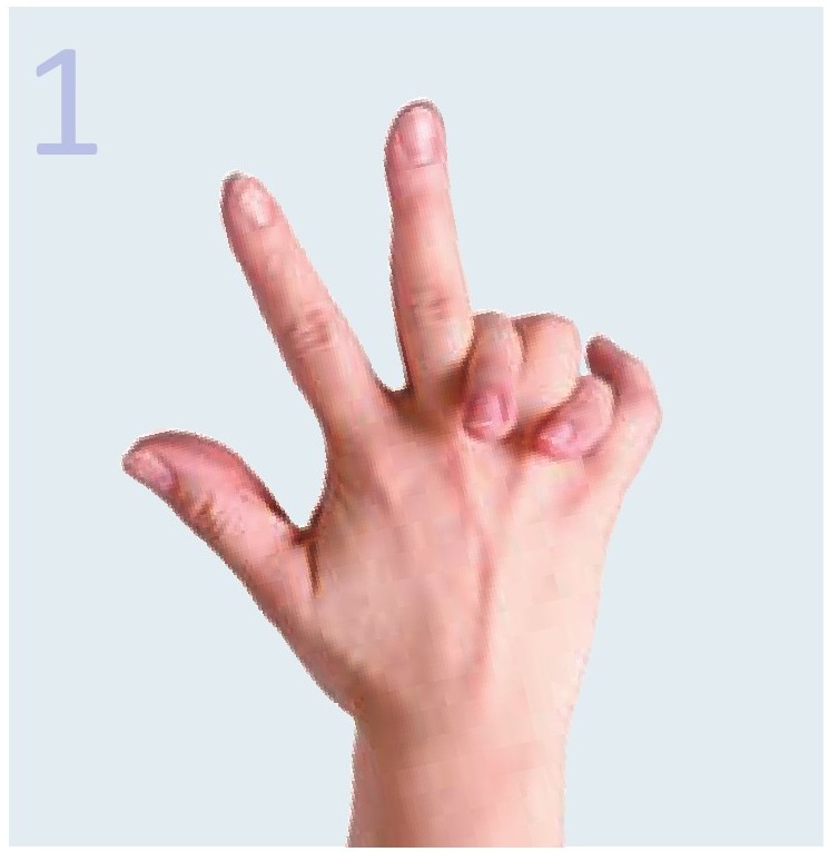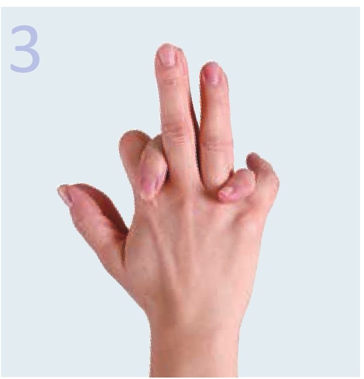 双手合并,掌心相贴,两两手指交错曲握,其余手指保持不动。练习15~30次。