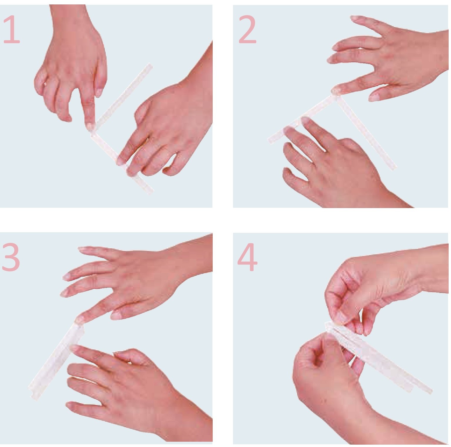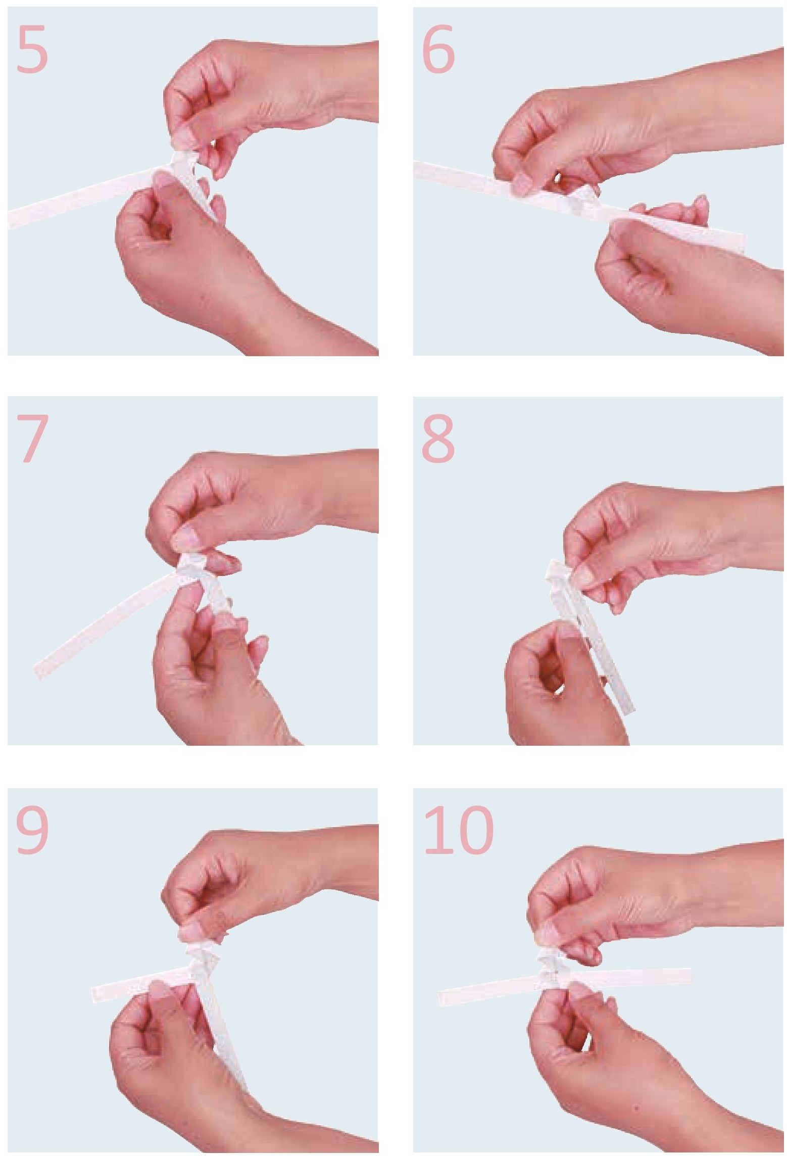 找一张两面不同颜色的纸,裁成1~2厘米宽条,长度随意。按照下图中教的方法折叠,制作成书签。虽然动作看起来比较简单,但是需要双手配合,灵活运用十指。