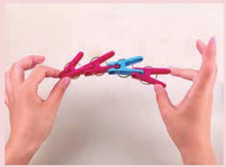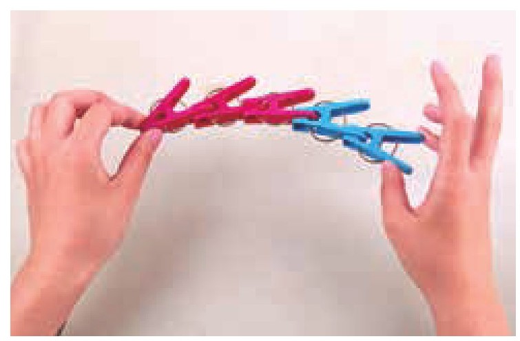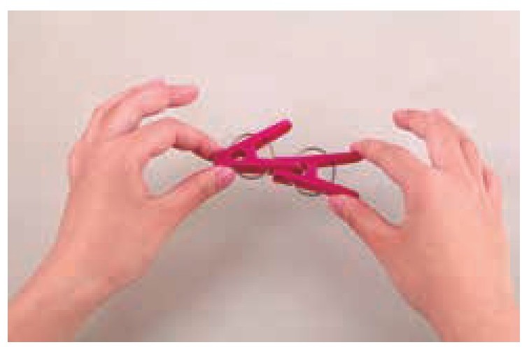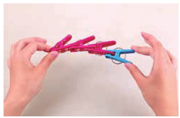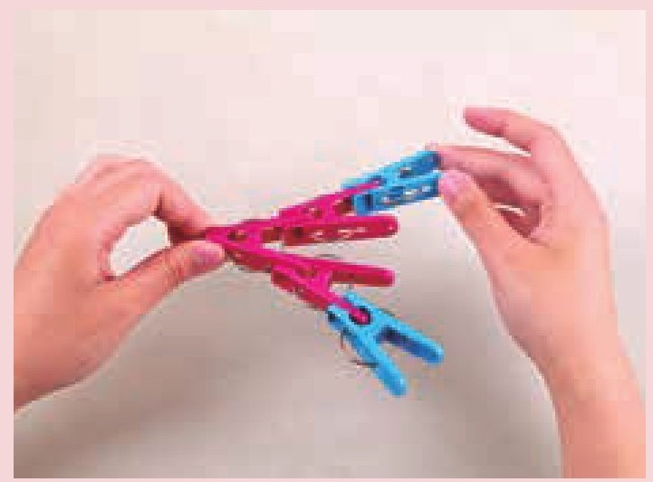 家里常用的夹子也是锻炼手指、刺激大脑的好道具。多收集一些家里闲置的夹子,通过两根手指来掌握平衡,将夹子尽可能长地连在一起。