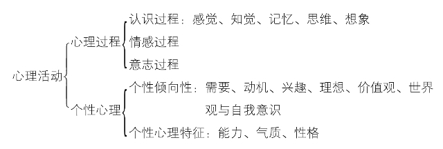 人的心理过程和个性心理是人完整的心理活动中不可分割的两个方面。它们的关系可以简略地表示如下: