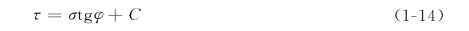 φ——岩石的内摩擦角,度。tgφ=f,f称为岩石的摩擦系数;