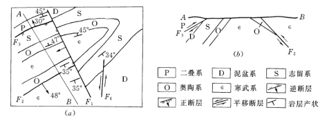 图2-21 断层造成地层中断、缺失和重复出露现象