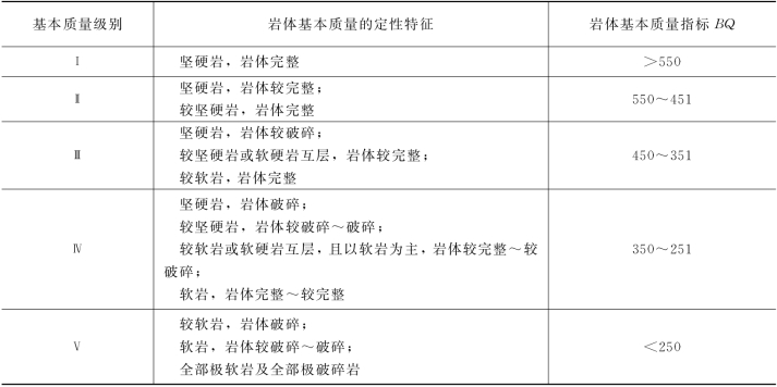 表2-11 岩体基本质量分级