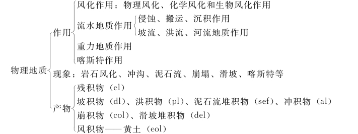 风化作用是岩石在大气、温度、水和生物的影响下,其物理性质和化学成分发生改变的过程。随深度增加,岩石风化程度减弱,故风化壳可分为全风化、强风化、弱风化、微风化四个带。其中弱风化、微风化带岩石经过处理,可作为水工建筑物地基。而风化新形成的残积物,颗粒大小混杂,不宜作为大型建筑物地基。
