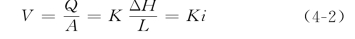 由水力学知:Q=AV,则达西定律又可写成下式: