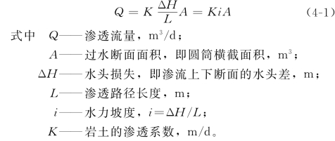 达西定律描述了地下水运动的基本规律,它广泛用于井孔涌水量、渠道与坝库区渗漏量以及含水层水文地质参数等计算中。