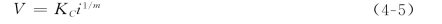 当地下水呈混合流时,其渗透流速与水力坡度的1/m次方成正比,m介于1~2 之间,即