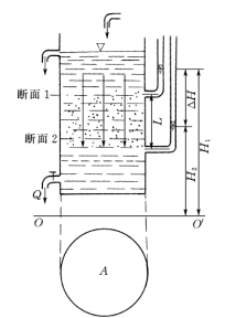 1852~1856 年间,法国水力学家达西(Henri Darcy)通过大量试验发现了地下水运动的线性渗透定律,又称达西定律。其试验装置如图4-11 所示,他用盛满0.1~3mm砂的金属圆筒装置,模拟地下水在砂层中的运动。试验获得如下结论:单位时间内通过筒中砂的流量Q与渗透路径长度L成比反,而与圆筒的过水断面面积A和上下两测压管间的水头差ΔH成正比,即
