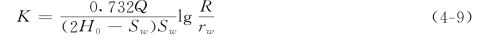 若涌水量和水位降深已知,根据式(4-8)可导出渗透系数K的计算公式: