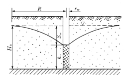将自然对数换为常用对数,并用Sw 表示井中水位降深,则涌水量公式为