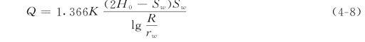 将自然对数换为常用对数,并用Sw 代表井中水位降深,即Sw=H0-hw,则式(4-7)可写成如下形式: