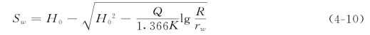 式中渗透系数K以m/d为单位,含水层厚度H0 和水位降深Sw 以m为单位。