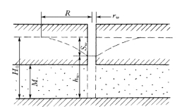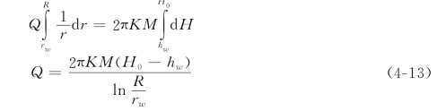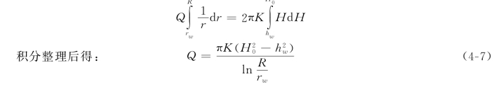 式(4-7)即为地下水向潜水完整井稳定运动的裘布依公式。