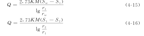 若含水层渗透系数和涌水量已知,根据式(4-8)可导出水位降深计算公式: