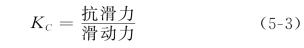 式中KC、K′C——抗滑稳定安全系数,KC忽略了滑动面上的粘聚力(C=0),K′C则考虑了滑动面上的粘聚力(C≠0);