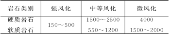 注1.对于微风化的硬质岩石,其承载力如取用大于4000kPa时,应由试验确定;
