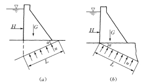 (a)单斜滑动面倾向上游;(b)单斜滑动面倾向下游