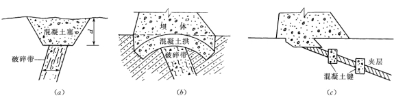 (a)混凝土塞;(b)混凝土拱;(c)混凝土键
