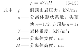 隧洞侧壁稳定时,如图5-15 (a),洞顶山岩压力为