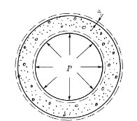 水工发电隧洞大部分是有压隧洞,隧洞的内水压力通过衬砌传递到围岩上,这时围岩为抵抗压缩变形而产生的反作用抗力,称为弹性抗力,如图5-18 所示。可用下式表示: