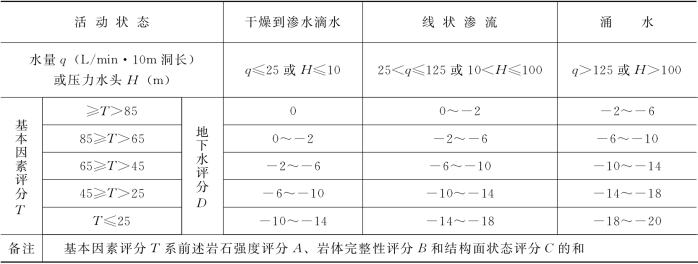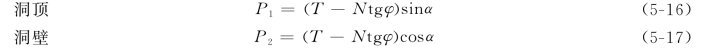 注表中Sz为铅直方向的山岩压力系数;Sx为水平山岩压力系数。假设山岩压力为均匀分布,计算公式如下:Pz=SzrB;Px=SxrH;式中Pz为均匀分布的铅直山岩压力(kN/m2);Px为均匀分布的水平山岩压力(kN/m2);r为岩石的重度(kN/m3);B、H分别为隧洞开挖宽度和高度(m)。