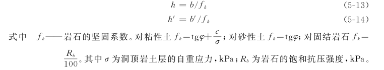 平衡拱的高度与围岩的性质和平衡拱的跨度有关,计算式为