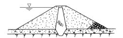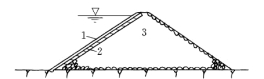 1—沥青混凝土斜墙;2—碎石垫层;3—堆石