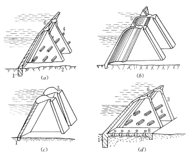 (a)、(d)平板坝;(b)连拱坝;(c)大头坝;