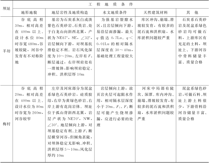 表5-15 梅村、羊坊坝址工程地质条件比较