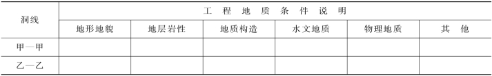 表5-17 梅村水库甲—甲、乙—乙两条洞线工程地质条件对比表