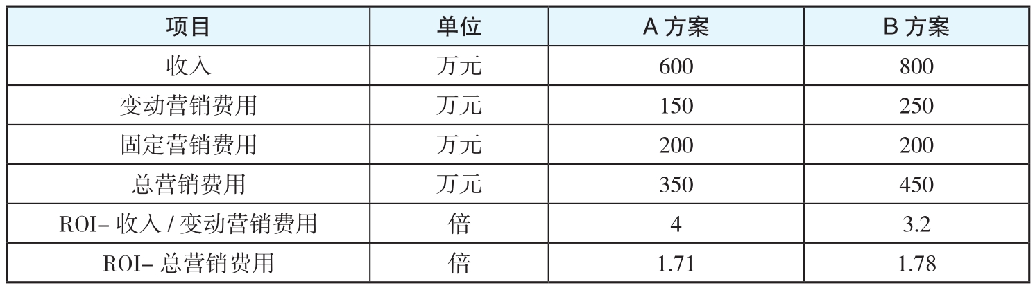 另外一个项目也非常有趣,他们衡量营销费用的投入产出比只看变动营销费用,不看固定营销费用(如表3-1所示)。