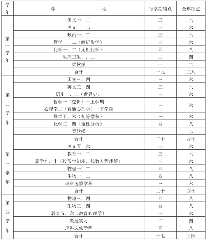 4.师范班。凡理科学生预备将来充任中等学校教职者,可入师范班。