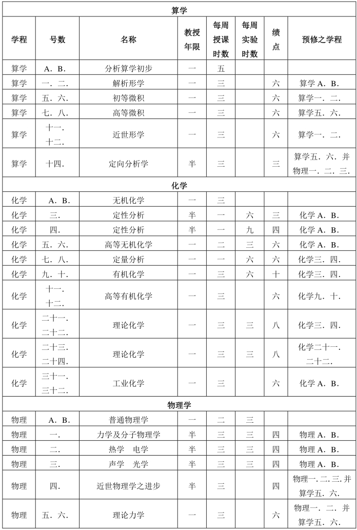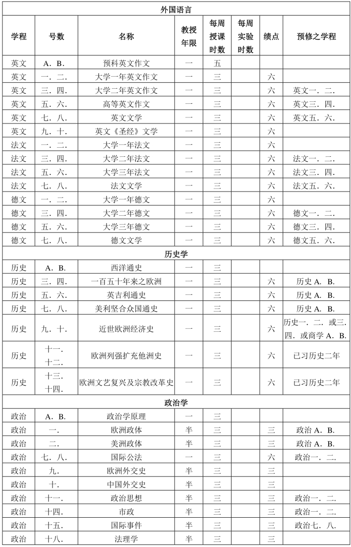 预科课程不论绩点,以习毕下表所规定之学程并考试及格者,始能毕业。