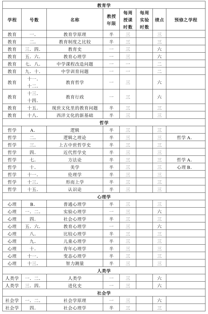 凡正科生习毕一百五十绩点,并考试及格者,始能毕业。惟在民国十四年或十四年以前毕业者,仍以习毕一百四十四绩点为合格。