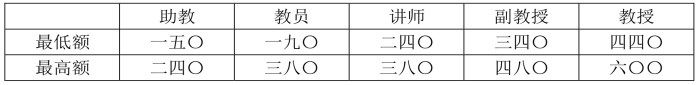 第十五条 本大学专任教师月薪之最低及最高额如下: