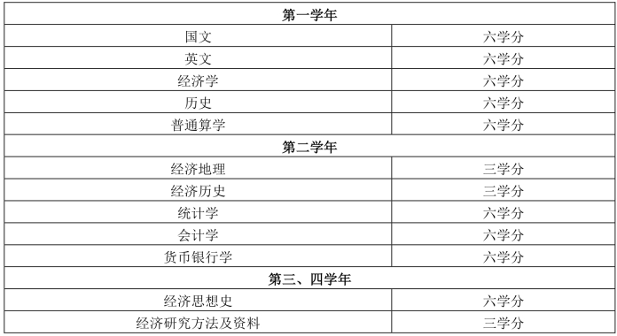 第四条 四学年中之必修课程如左:
