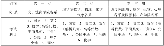(二)理学院:(1)数学系,(2)物理学系,(3)化学系,(4)生物学系,(5)地学系,(6)气象学系,(7)心理学系。