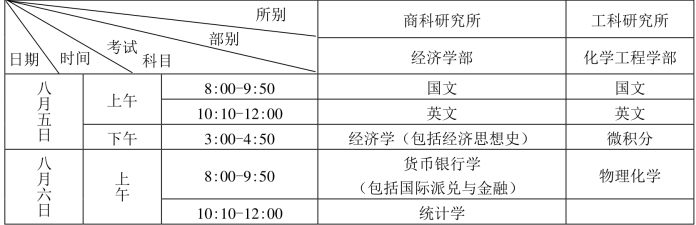 (壹)本大学本年度在平、津、沪、汉、京、粤、沈、蓉、昆九处招考第一年级研究生,男女兼收。