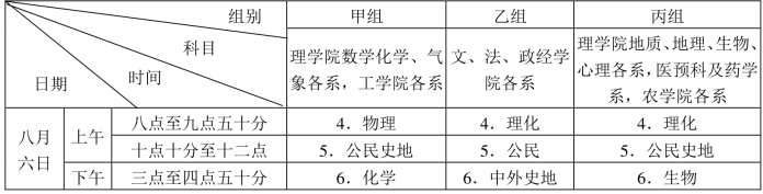 (一)理学院:(1)数学系,(2)物理学系,(3)化学系,(4)地质学系,(5)动物学系,(6)植物学系,(7)医预科(医学系及牙医学系)。