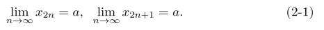利用其逆否命题,可以判断数列{xn}不收敛.即如果数列{xn}的任意两个子列不收敛,或者收敛到不同的极限值,则{xn}不收敛.例如由此可以证明数列{cosnπ}不收敛.但是下面的结论成立.