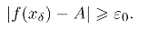 如果存在ε0>0,对于任何δ>0,总存在一点xδ,满足0<|xδ−x0|<δ,但是