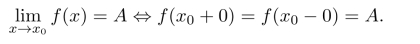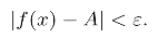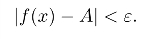 f(x)=A⇔设函数f(x)在x0的某一邻域内有定义(在x0点可以无定义),A是常数.对于任意的ε>0,存在δ>0,当0<|x−x0|<δ时,有
