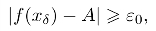 对于任意的A∈R,如果存在ε0>0,对任何δ>0,总存在一点xδ,满足0<|xδ−x0|<δ,但是