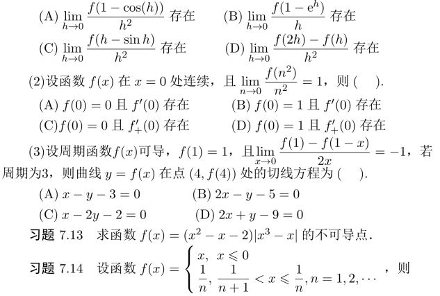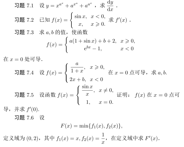 习题7.7 判断下列函数在x=0点是否可导,若可导,求出f′(0).