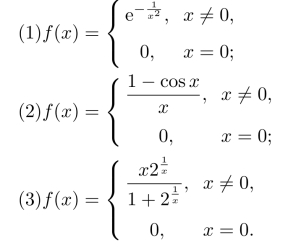 (1)在x=0连续;(2)在x=0可导;(3)在x=0处导函数连续.