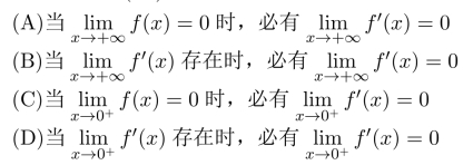 习题7.11 (1)设函数y=f(x)在(0,+∞)内有界且可导,则下面的哪个结论是正确的().