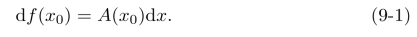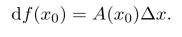 则A(x0)∆x为∆y的线性主部,并称∆y的线性主部A(x0)∆x为函数f(x)在x0点的微分,记为dy|x=x0或者df(x0),因此