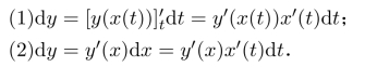 若x并非自变量,而是中间变量,即x=x(t),并且假定x(t)也可导,则有dx=x′(t)dt.对于y=y(x(t))有微分