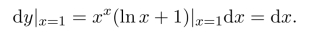 例 设y=xx,求dy|x=1.