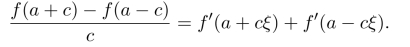 习题10.3 设c>0,函数在闭区间[a−c,a+c]上可导,试证:至少存在一点ξ∈(0,1),使